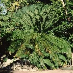 This document provides a detailed overview of the queen sago (Cycas circinalis), a palm-like shrub known for its slow growth and ornamental appeal. It describes the plant’s physical characteristics, including its dark brown trunk, feathery leaves, and potential height and spread. The document also covers the plant’s growing conditions, such as its preference for part shade to full sun, high drought tolerance, and soil requirements. Additionally, it highlights the queen sago’s uses in landscaping, its propagation methods, and common pest issues. The queen sago is noted for its suitability as a specimen plant in large areas and its minimal maintenance needs once established. Original publication date October 1999.