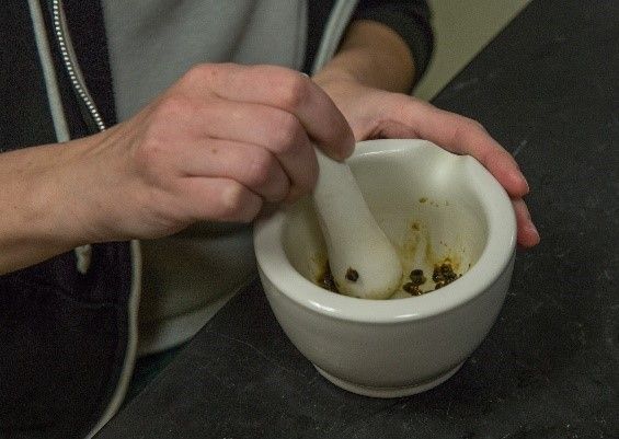 Step 2. Pour 1 teaspoon of black pepper into a pile at the center of a small plate as shown in Figure 23.