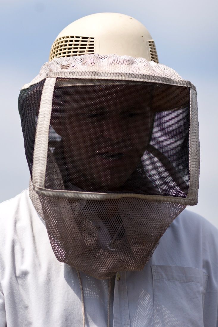 Veil: A hat with netting that covers and protects the head, face, and neck from stings.