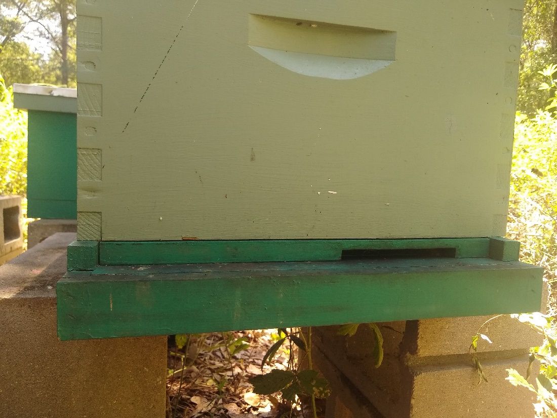 Entrance reducer: A wooden or plastic barrier placed at the entrance to a beehive that reduces the size of the opening.