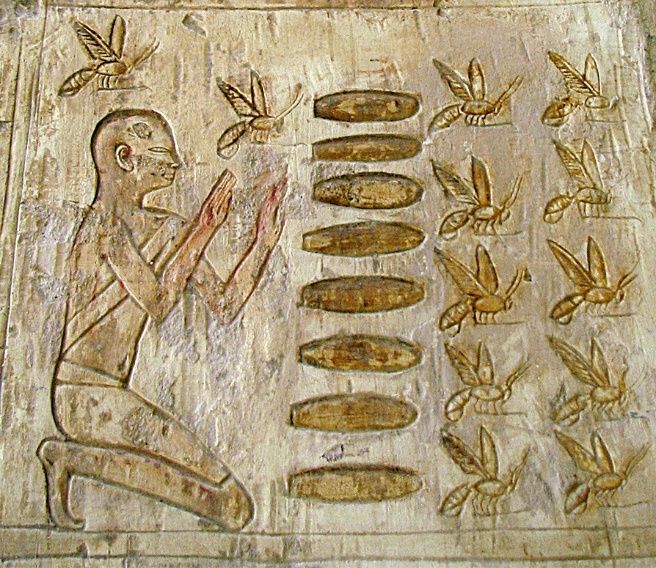 Ancient Egyptians are the first beekeepers that humans have on record. Images on stone walls, dating back to 650 BCE, show humans keeping or managing hives of honey bee colonies in clay cylinders (Figure 3). Ever since, beekeepers all over the world have been working to improve the lives and products of bees.