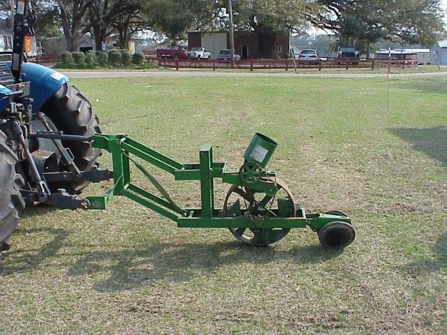 Direct-seeding through mulch can be accomplished by hand. A second method is the "plug-mix" planter, as shown in Figure 7. A third option is to direct-seed with a mechanical plate seeder (Figure 8). Seed is mixed with a peat-vermiculite (potting soil) material, wetted, and placed in the hopper on the planter. The machine punches a hole in the polyethylene mulch and places a small amount of the "plug-mix" into the hole. New vacuum seeders have recently been developed that will place individual seeds through the mulch. The vacuum seeders offer great potential for seeding large acreages.