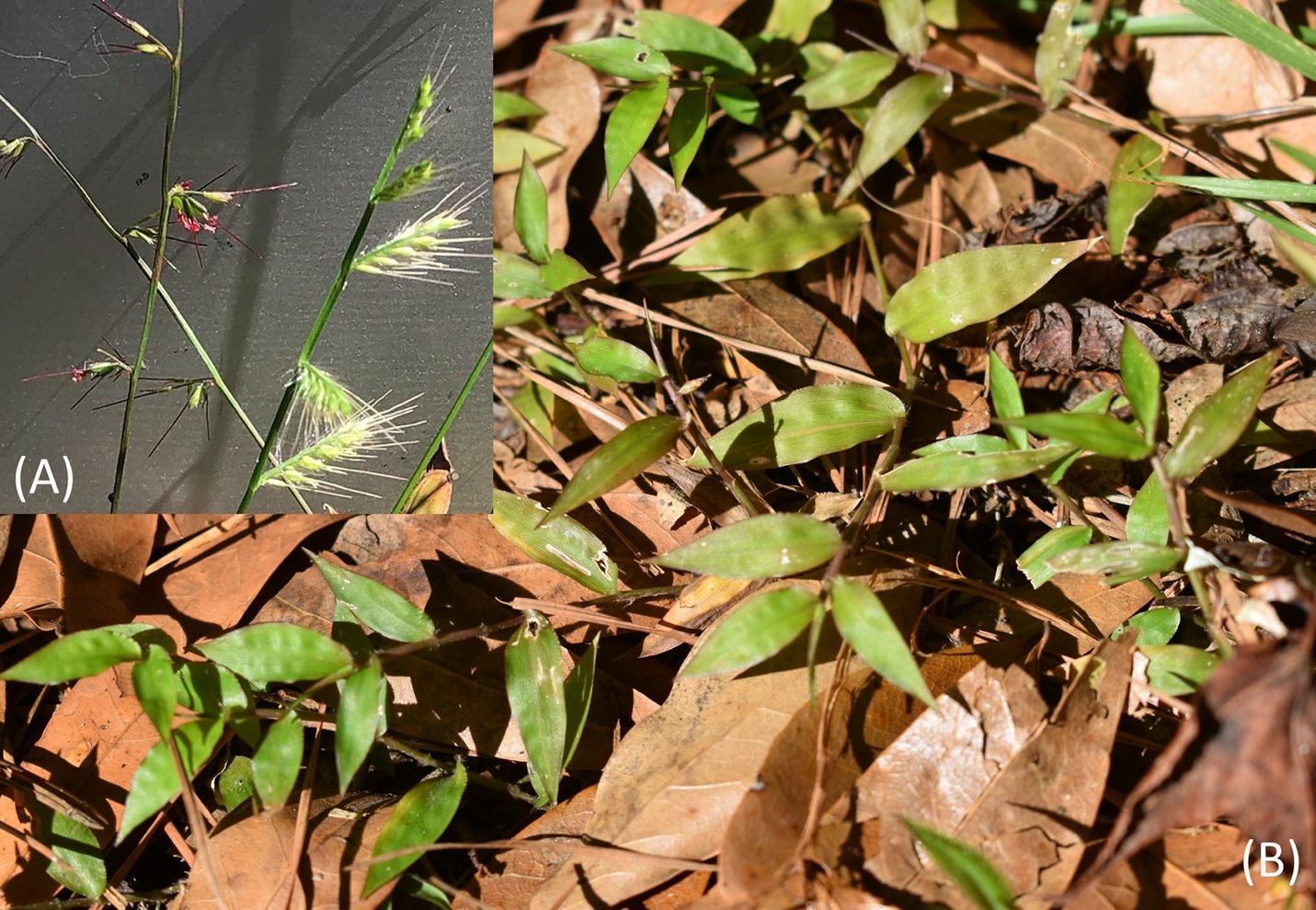 Habit: Grass, short-lived perennial with spreading habit, rooting at nodes. Grows up to 4 inches (10 cm) tall. Spreads vegetatively and by seeds