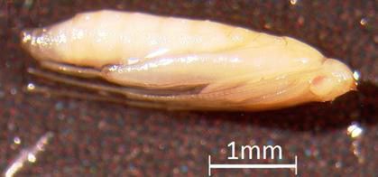The pupa is found inside a white cocoon spun by the last instar (Figure 13). It is light brown and has an approximate length of 3.2 ± 0.2 mm (0.125 ± 0.008 in) (Figure 14). Duration of the pupal stage is about 5 to 7 days.