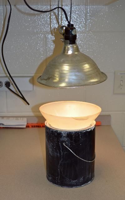 Light-trapping is a general term for attracting and capturing nocturnal insects with lamps, especially those that emit light in the ultraviolet range, e.g., mercury vapor lamps, black light lamps, or fluorescent tubes. A simple light trap can be made from a funnel, a round bucket, and a light. The funnel is placed in the container and the light source suspended above. Insects attracted to the light fall through the funnel and are trapped. Newspaper strips, egg boxes, or similar materials provide a hiding place for trapped insects. Hanging a black light adjacent to a vertically suspended white sheet outdoors is an excellent way to observe large numbers of nocturnal insects, including moths and beetles. In addition to the need for a power source, the main disadvantage of light traps is their rather indiscriminate nature. They catch many different types of insects without necessarily controlling any specific one.