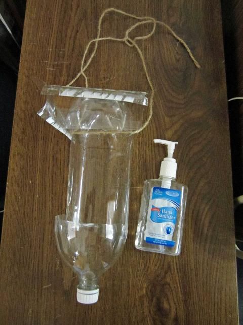 Social wasps including yellow jackets, hornets and paper wasps are common stinging insects that can be a nuisance when foraging near garbage cans or building nests (which they will defend) close to human activities. The plastic bottle funnel trap can be used as a simple DIY trap. Adding petroleum jelly or cooking oil along the inside edges of the funnel can cause wasps to slip inside the trap. Preferred baits vary according to the season and wasp species. In general protein baits (e.g., hamburger) work best in the spring when wasps are building their colonies while carbohydrate baits (e.g., fermenting fruits or beer) may be more effective in the late summer and fall. Do not use honey because it may attract honeybees. Hang traps about 4 to 5 feet above the ground. For safety, place them away from sites of human activity.