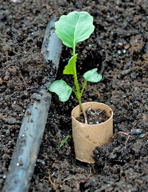 The larvae of some noctuid moths chew through the stems of young plants, killing them. These "cutworms" typically hide in the ground during the day and are easy to overlook. Vulnerable seedlings can be protected with a section of cardboard tube placed around the stem and pushed a few inches into the ground. These "cutworm collars" can be made from used toilet paper rolls, which will naturally decompose after a few weeks, when the plants will be less susceptible to damage.