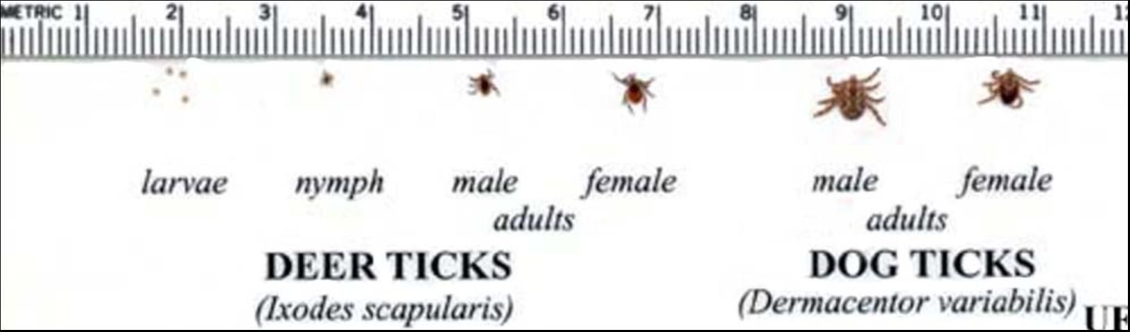 Human exposure to blacklegged ticks is greatest during the summer months when high nymphal Ixodes scapularis activity and human outdoor activity coincide. Their small size, their vastly greater abundance over the adult stages and the difficulty in recognizing their bites (Berger 1989) tend to make nymphs the most important stage to consider for reducing disease risk.