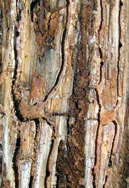 These gallery patterns are sometimes obscured by larval galleries of other phloem borers in the families Cerambycidae (roundheaded borers) and Buprestidae (flatheaded borers) that readily colonize dead pines.