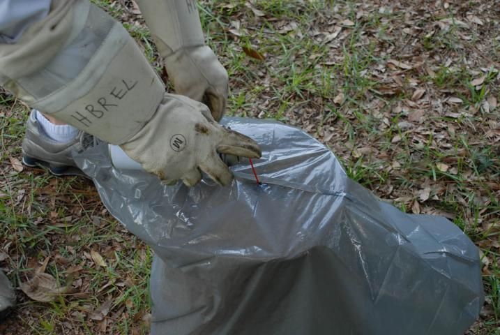Gently remove the trap from the structure, place the entire trap in a garbage bag, and seal the bag with duct tape (Figure 10).