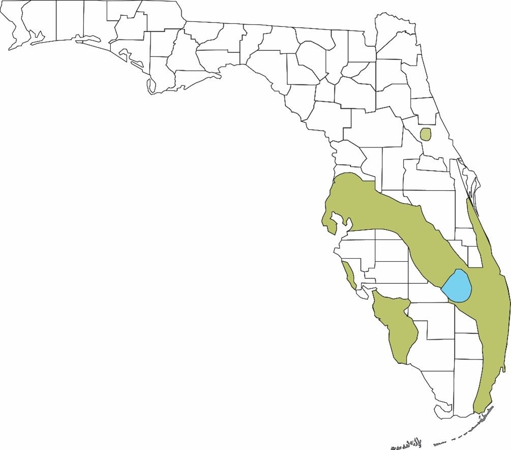 The cane toad (Rhinella marina), sometimes referred to as the "bufo," giant, or marine toad, is native to extreme southern Texas through Central and tropical South America, but is established in Florida. Cane toads were initially introduced to Florida as a method of biological pest control in the 1930s. The toads were supposed to eat beetles threatening the sugar cane crop, but the introduced population did not survive. In the 1950s, a pet importer released about 100 cane toads (maybe by accident or on purpose, no one is sure) at the Miami airport, and there are other documented incidents of purposeful releases in south Florida. Cane toads have since spread through much of south and central Florida. As of 2017, they were established in much of the southern peninsula as far north as Tampa (Figure 1), and there have been several isolated sightings in northern Florida and one in southeast Georgia. A small population appears to be established in Deland in Volusia County, and there was a population that survived for several years near Panama City. Cane toads are still available through the pet trade, and isolated sightings in northern Florida may be escaped or released pets.