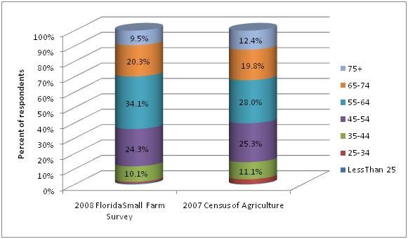 Gender of respondents consisted of 195 (65%) males and 103 (35%) females, whereas US Census data (2007) indicated 78% of farm operators in Florida were male and 22% were female.