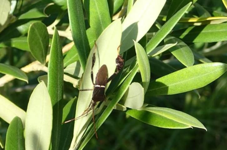These true bugs (Order Hemiptera) are known fruit, seed, and vegetable pests in Florida. Olive growers have reported seeing leaffooted bugs (Figure 1) and stink bugs feeding on fruit and causing damage. Management of these pests can be difficult, but if you do not use pesticides for insect management, then natural enemies like parasitic flies and predatory stink bugs can help manage populations.