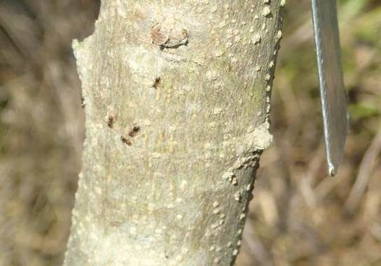 Ants can be a sign of a bigger problem in your grove. Ants crawling on tree trunks (Figure 3) and branches can indicate a scale insect problem. If you find ants, you should check the tree for scale insects or signs of scale insects like sooty mold (described below). Although not usually damaging to plants, fire ants can be a nuisance and a danger for workers. Fire ant management can be achieved with several methods described by Collins and Scheffrahn.