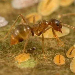 Native to central South America, red imported fire ants are established in the U.S. and Australia. Its sting is 95% alkaloid venom, which causes both the pain and white pustule that appears about a day after the sting occurs. In urban settings, they may nest under patio slabs, in lawns, under edges of sidewalks, foundations, concrete driveways, and electrical boxes. After a heavy rain, the colony may move to higher ground or inside homes to take refuge from saturated soil. They also reduce ground-nesting populations of rodents and birds.
